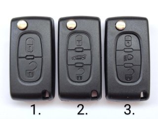 Citroen C2 C3 C4 C6 Peugeot 207 307 308 407 607 807 dvě varianty bez uchycení baterie CE0523, s uchycením baterie CE0536, klíč bez planžety, planžeta VA2, HU83 = 100kč.